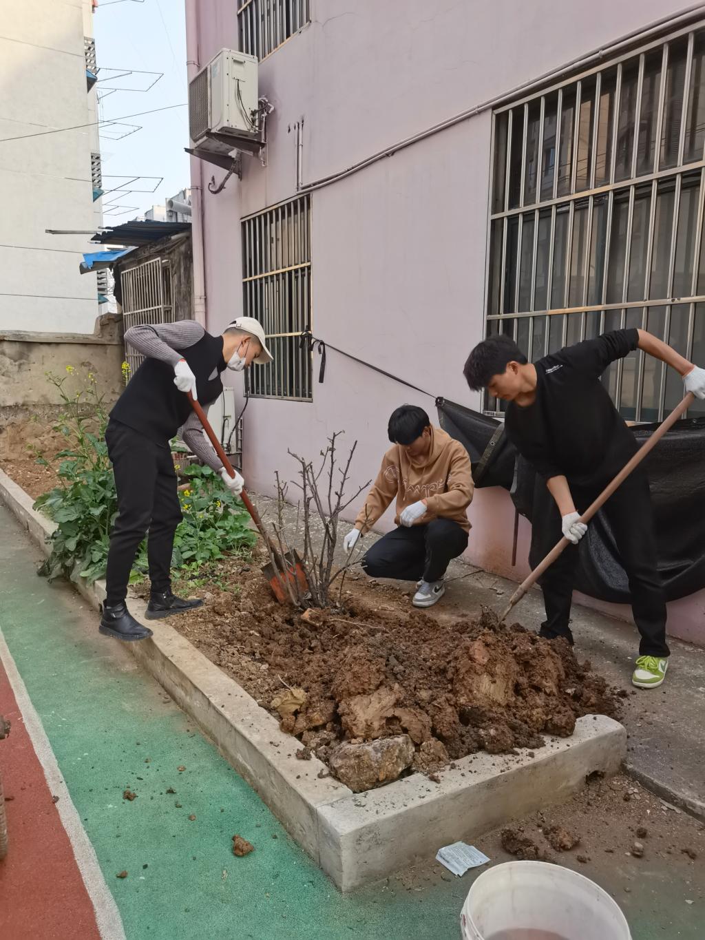 天天向上儿童康复中心负责人郑校长热情接待了参加志愿服务的师生,她介绍了中心的基本情况并带领大家参观了教室、游戏活动室等教学和活动场所。接着,志愿者们来到了康复中心的花园,开展“移花除草·美化环境”志愿服务活动。大家不怕脏、不怕累,分工协作,有人翻地除草、有人移植花苗、有人填土浇水,大家配合默契,干的热火朝天,充分发扬了志愿服务精神。经过志愿者的辛勤劳动,道路两旁的杂草被全部清除干净,花苗都被移植到了新的位置,整体环境焕然一新。